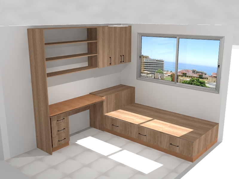 Diseño de muebles estudio, habitación juvenil